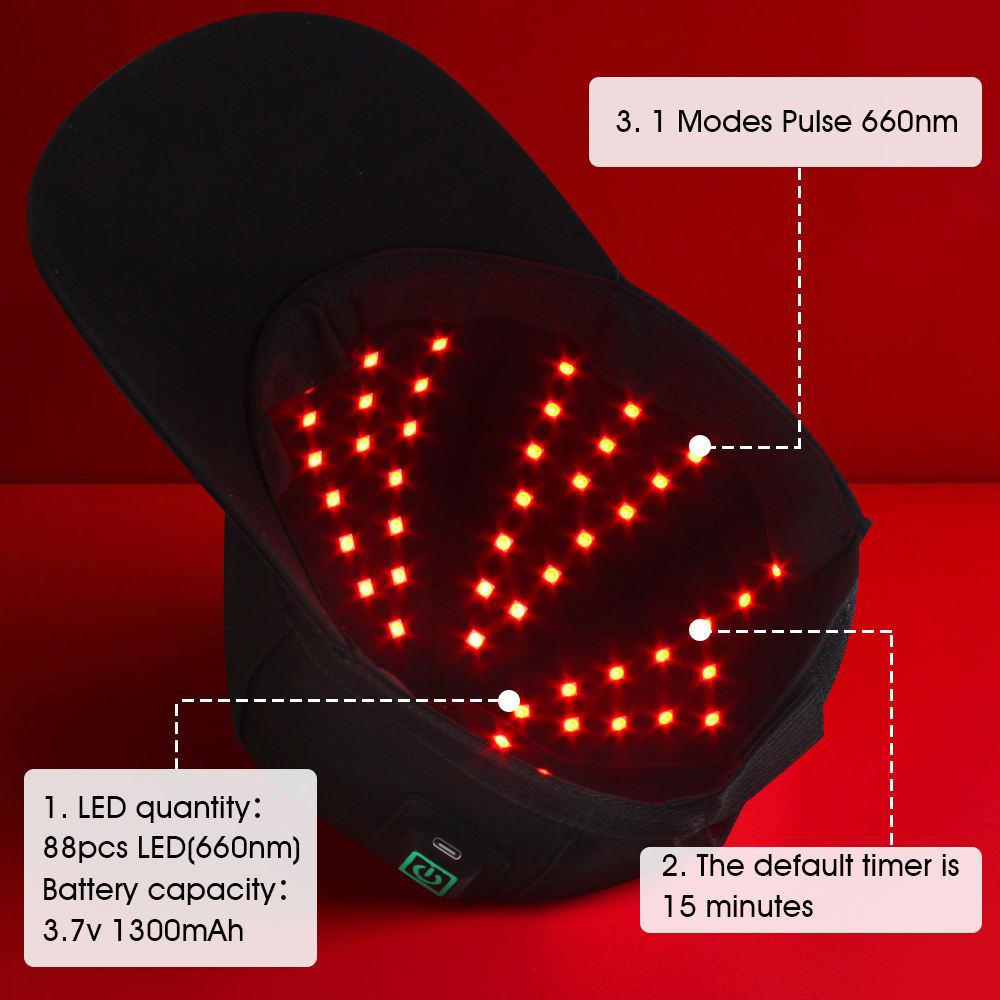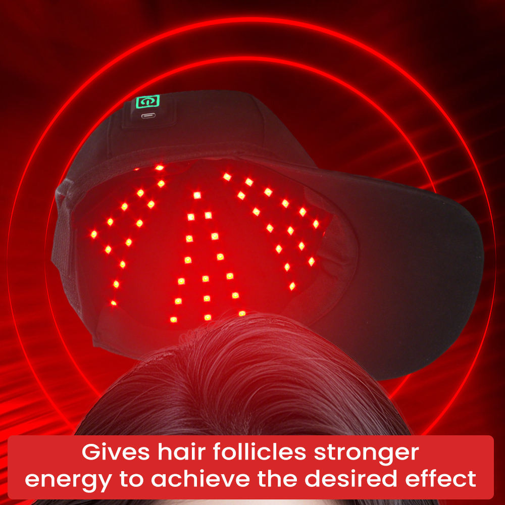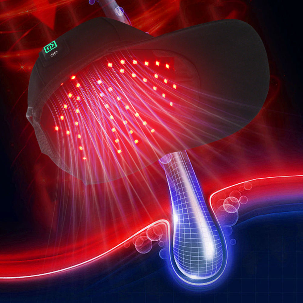 Advanced wearable hat utilizes multi-wave technology with pulsing and dimming features.Its 330 high-powered LEDs (55W, 135mW intensity) deliver deep red light therapy to the scalp, stimulating hair follicle growth, improving circulation, and reducing hair loss.Featuring a low electromagnetic field and flicker-free design, this hat offers a comfortable and effective solution for hair loss.